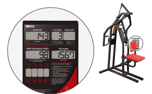 - Large digital display that shows resistance, sets, repetitions, and peak power