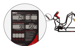 - Large digital display that shows resistance, sets, repetitions, and peak power
